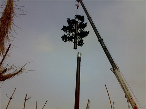 仿生樹塔是通信行業用于偽裝天線最常用樹型之一,高10米~35米。樹冠整體造型成寶塔狀。 仿生樹塔采用高強度的鍍鋅管塔為主桿,外敷高分子仿真樹皮,透波性率強,阻燃性好,達到I級阻燃指標,保證20年不老化。樹葉采用抗紫外線PU高性能防阻燃環保材料。耐腐蝕性能好,耐老化耐高溫防阻燃,更加環保,防紫外線強。整體外形不僅美觀,仿真度高、經久耐用,而且與周邊環境特別協調,非常適用于對環境美化要求較高的基站如:高級住宅區、主題公園、風景名勝旅游區、動植物保護區及游樂場所。